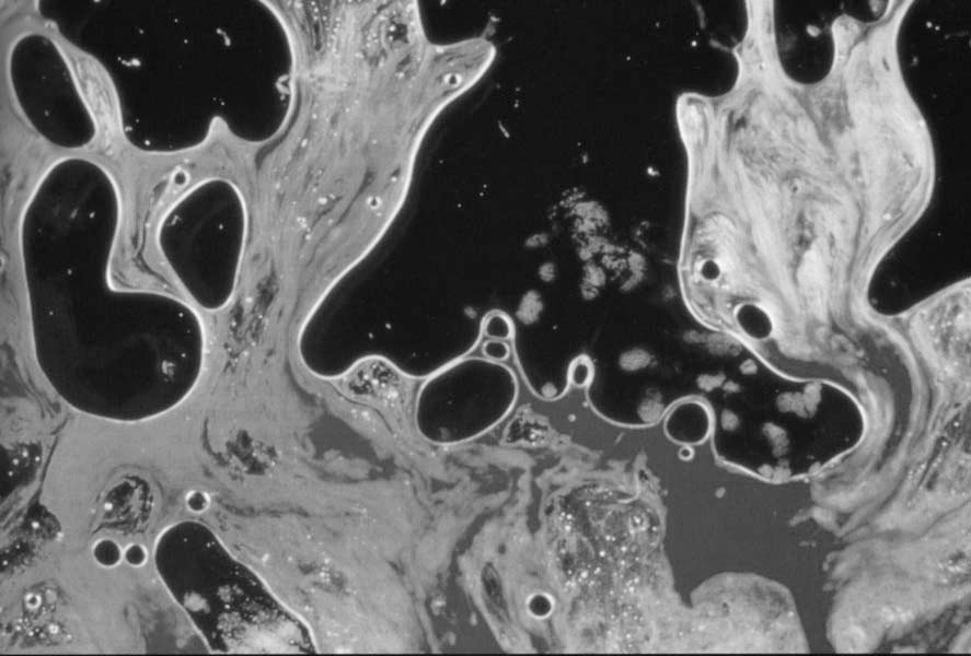 ¿Y qué hay en esa composición líquida con colores cálidos atrapada entre dos laminillas? Sangre y semen. El líquido rojo pertenecía a una vaca, mientras que el autor de la eyaculación fue el propio Serrano.